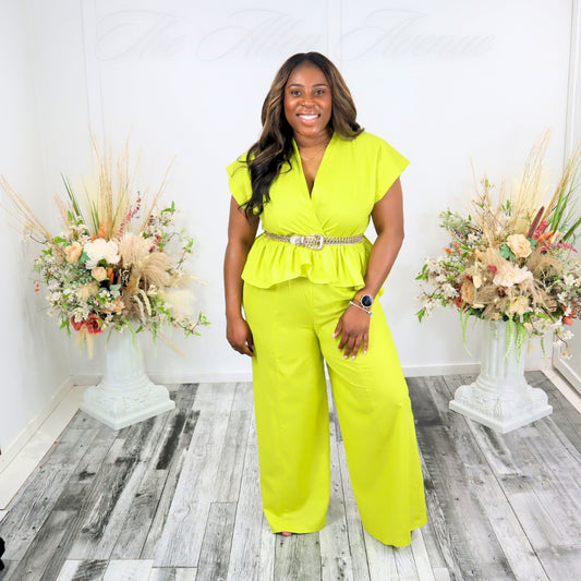 Lilac Lemon Silk Two-Piece Matching Pants Set
