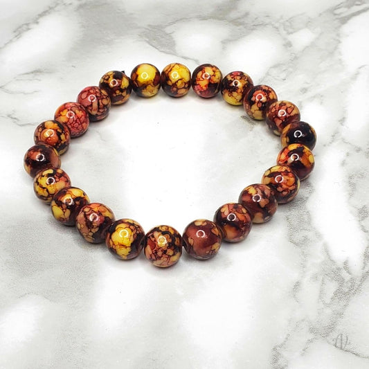 Brown, Yellow & Red Marble Opaque Bead Bracelet