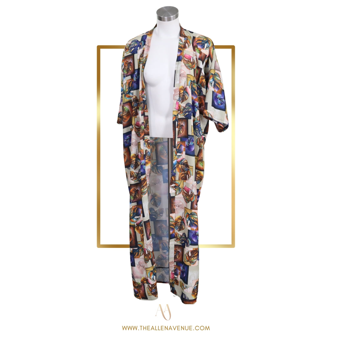 Wrap yourself in seasonal elegance with the Autumn Whisper Set. This matching duo features a flowing maxi-length kimono and wide-leg, high-waist pants, crafted from silk that moves with effortless grace.